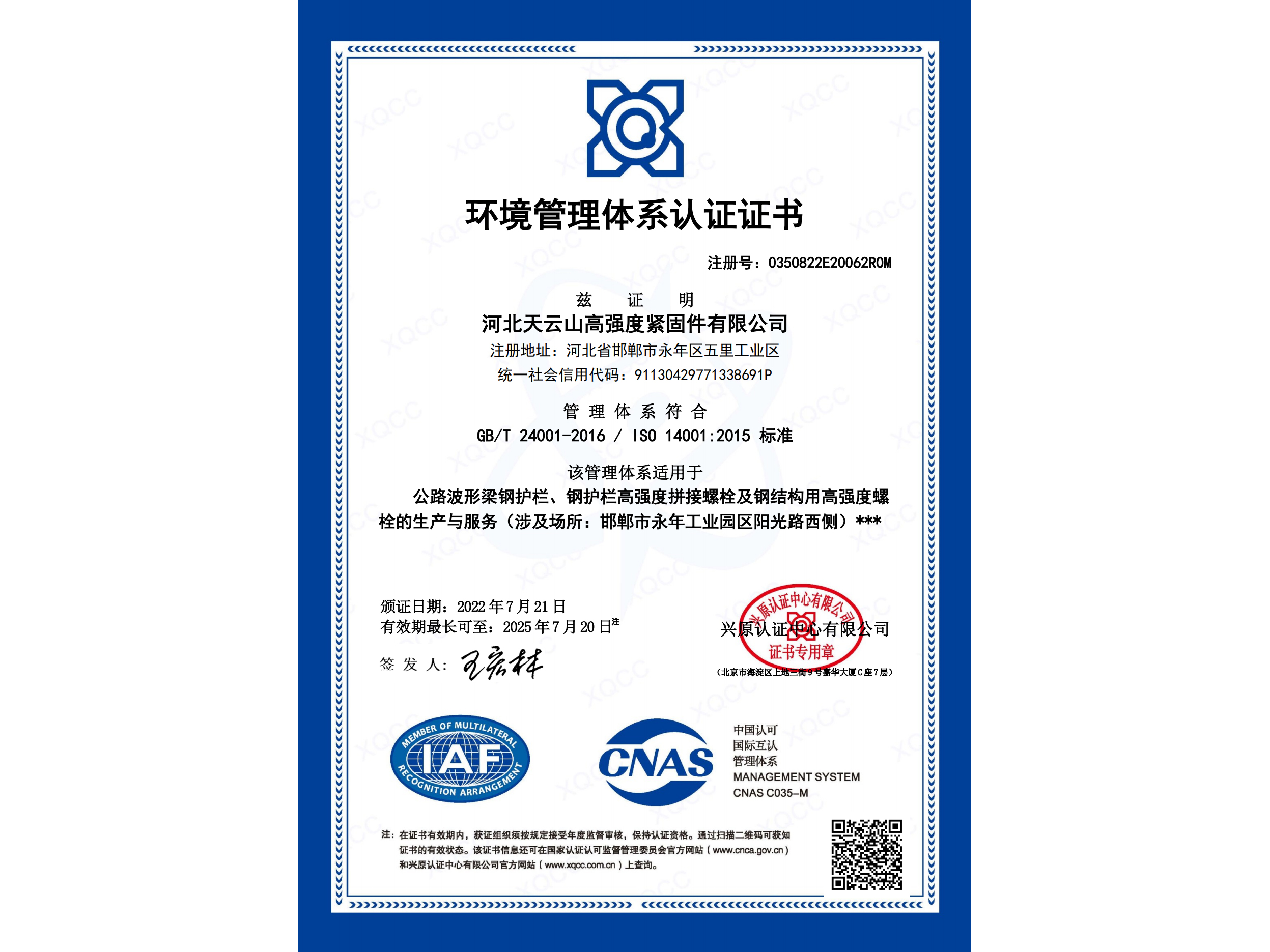 環境管理體系認證證書