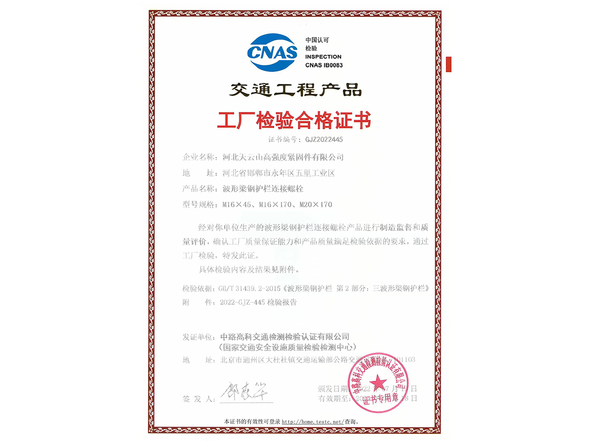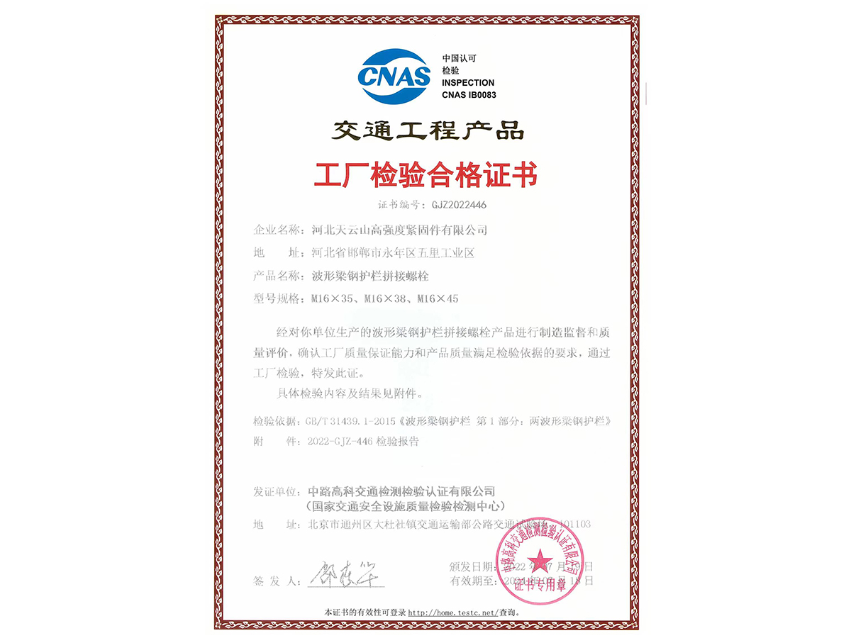 拼接螺栓工廠檢驗合格證書