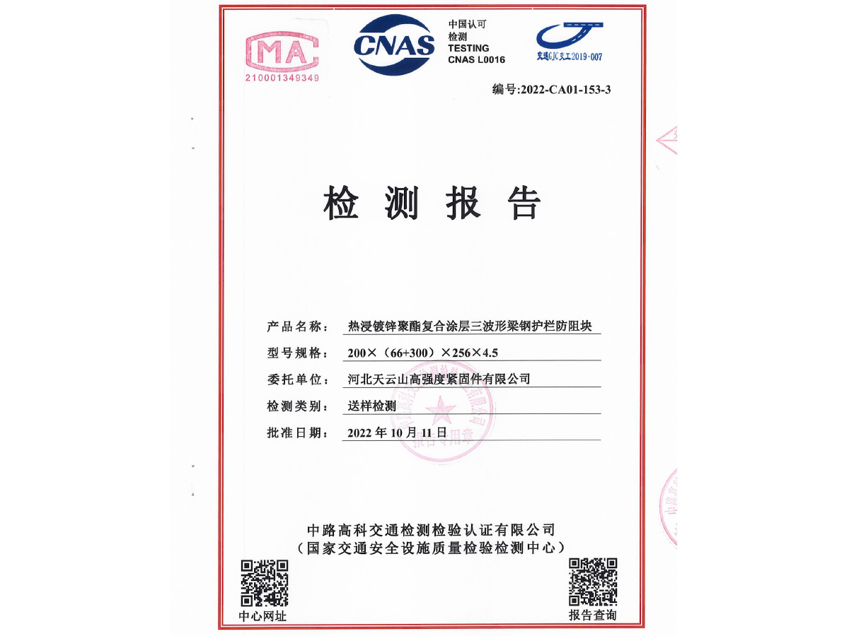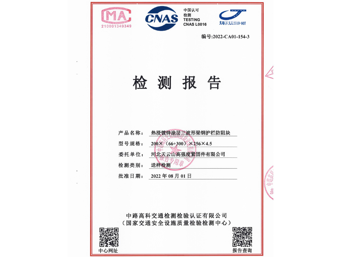 鍍鋅防阻塊檢測報告
