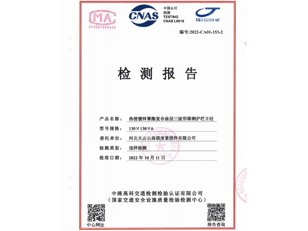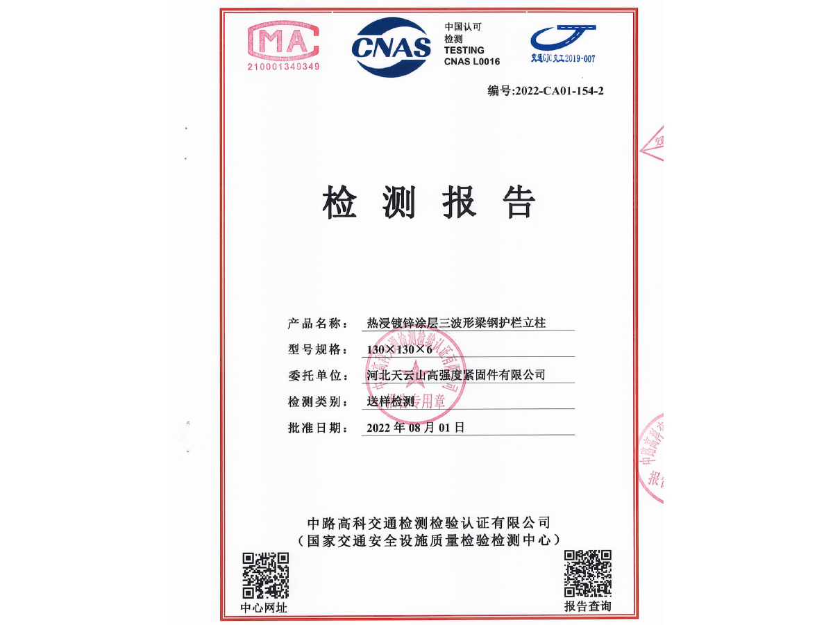 鍍鋅方立柱檢測報告